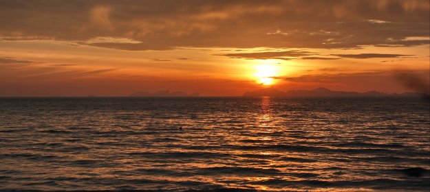 Sonne Meer Berge Wasser Sonnenuntergang Insel Abend Entspannung Wolken Himmel Wärme Thailand