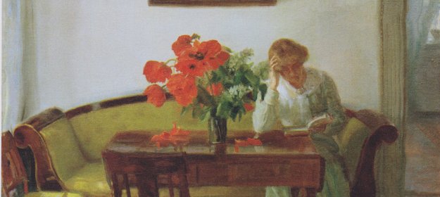 Interior with poppies and reading woman