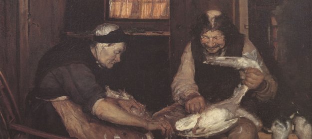 Alte Lene eine Gans rupfend
