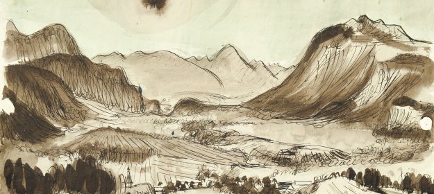 Nachkriegskunst Zeichnungen Max-Karbacher Berchtesgaden Aquarell