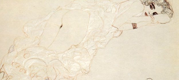 Gustav Klimt Zeichung auf dem Bauch Lieg