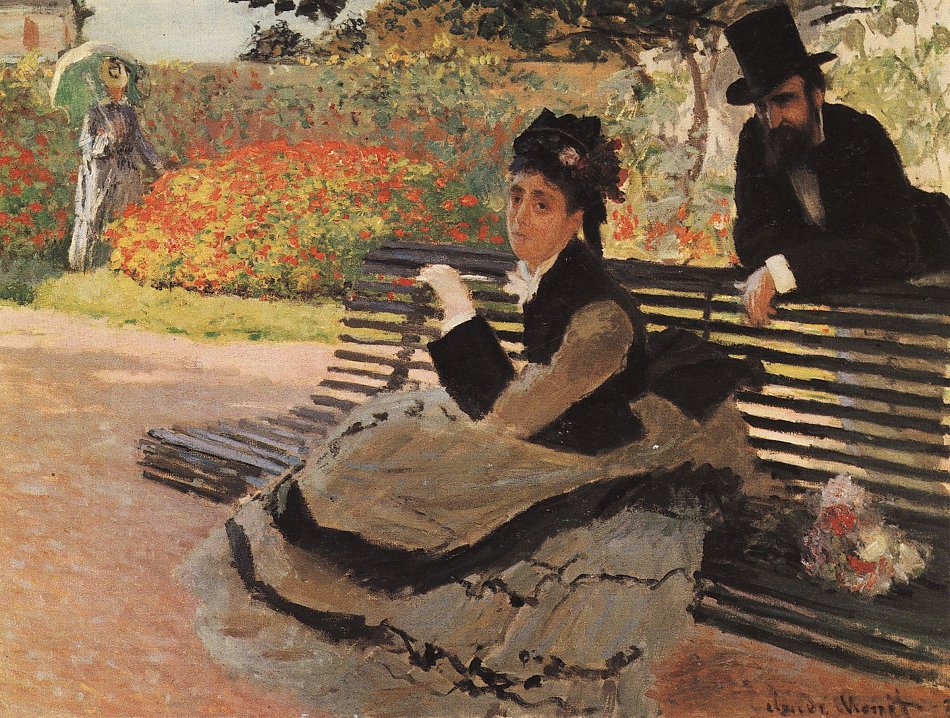 Bestellen Sie das Bild für die Wand "Claude Monet die Bank" aus der Reihe Claude Monet nach Ihren Wünschen in verschiedenen Bildgrößen als echten Leinwanddruck oder unterschiedlichen Bildgrößen auf Premium- Photo-Papier.