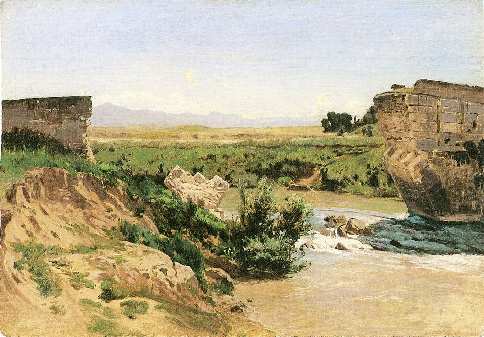 Ein Meisterwerk von Carl Schuch: Brückenruine an einem Flusslauf