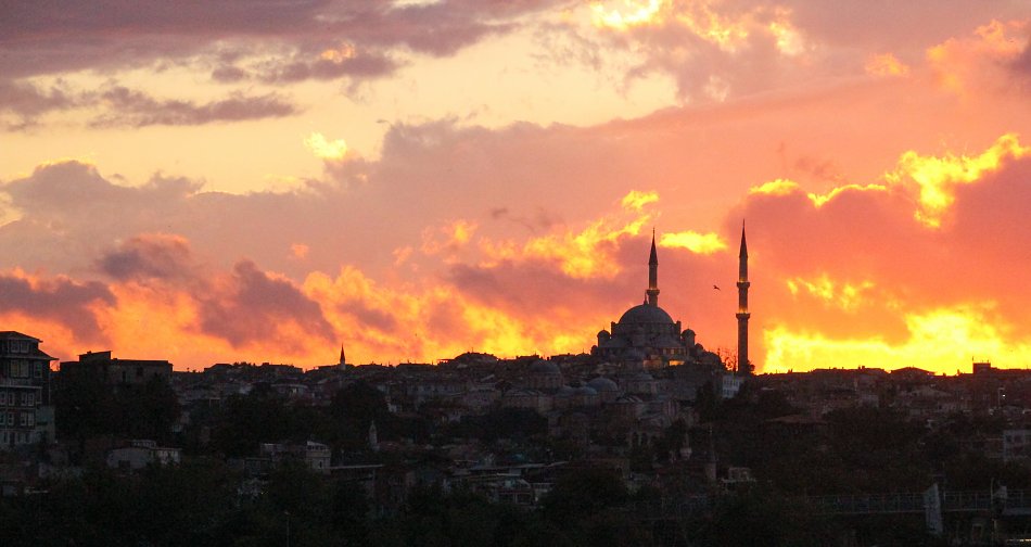Bildkategorien: Türkei Istanbul Panorama Moschee Minarette Himmel Wolken Strahlende Rosarote